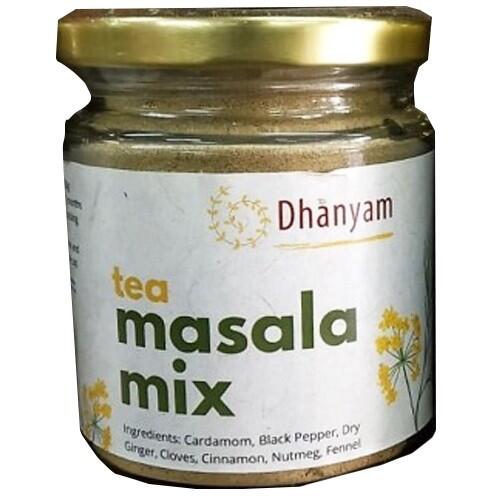 Elevate your tea experience with Dhanyam’s Organic Masala Tea Mix, a symphony of aromatic spices expertly crafted in-house at Sattva Kitchen. Designed to enhance the flavor and depth of your favorite tea, our masala tea mix is a harmonious blend of premium-quality organic spices, including cardamom, black pepper, dry ginger, cloves, cinnamon, nutmeg, and fennel. Each ingredient is carefully selected for its unique flavor profile and health benefits, creating a versatile and delicious addition to your daily tea ritual.