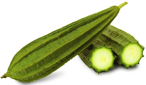 Ridge Gourd it is a dark green, ridged and tapering pretty vegetable. It has white pulp with white seeds embedded in spongy flesh.