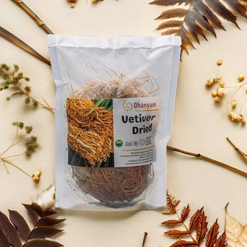 Dhanyam’s Dried Vetiver is a pure, natural offering rooted in ancient wellness traditions. Known for its exceptional cooling properties, vetiver—also called khus—has been used for centuries in Indian households to beat the heat and soothe the senses. Our dried vetiver is carefully harvested and sun-dried to preserve its earthy aroma and potent qualities, making it a must-have for holistic summer care.