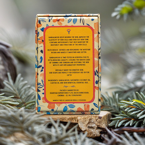 At Dhanyam, we pride ourselves on using only the finest natural ingredients, ensuring that our Sandal Handmade Soap is free from harmful chemicals, artificial fragrances, and preservatives. Each bar is meticulously crafted using traditional methods, allowing the soap to cure naturally. This process enhances the soap’s longevity and ensures that it retains its beneficial properties, offering you a premium, long-lasting product.