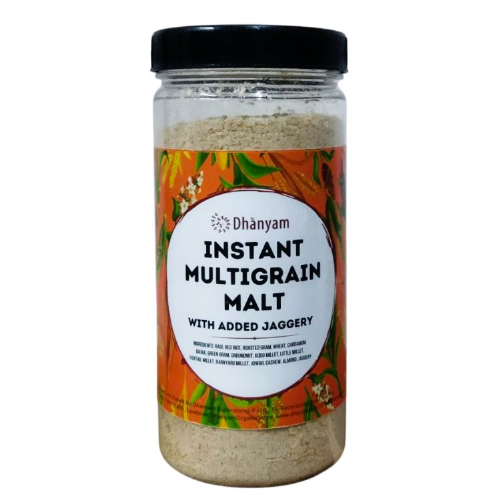 To enjoy, simply stir the malt powder into hot milk or water, allowing its inviting aroma and rich flavours to unfold. It is best stored in an airtight container in a cool, dry place to maintain its freshness and taste. Whether served as a nourishing breakfast or a comforting evening drink, this multigrain malt is a gentle reminder of the time-honoured Indian tradition of wholesome eating. With every pack, Dhanyam upholds its ethos of bringing naturally good, thoughtfully prepared foods to your table.