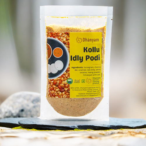 What sets Dhanyam’s Organic Kollu Idly Podi apart is its commitment to organic farming practices. By sourcing ingredients that are grown without synthetic pesticides or fertilizers, Dhanyam ensures that the idly podi is free from harmful chemicals and rich in natural nutrients. This dedication to organic principles not only makes the podi healthier for consumers but also supports sustainable agriculture and the well-being of farmers.