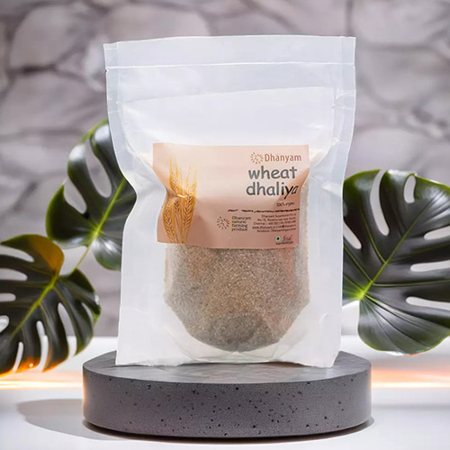 Dhanyam’s Organic Wheat Daliya is a nutritious and versatile food product made from coarsely ground wheat grains. It is produced using organic farming practices, ensuring that the wheat is grown without the use of synthetic fertilizers, pesticides, or genetically modified organisms. This commitment to organic cultivation not only promotes environmental sustainability but also results in a product that is pure, natural, and rich in essential nutrients, offering a wholesome addition to any diet.